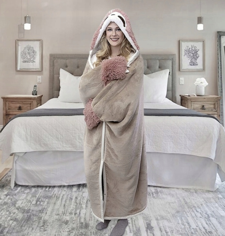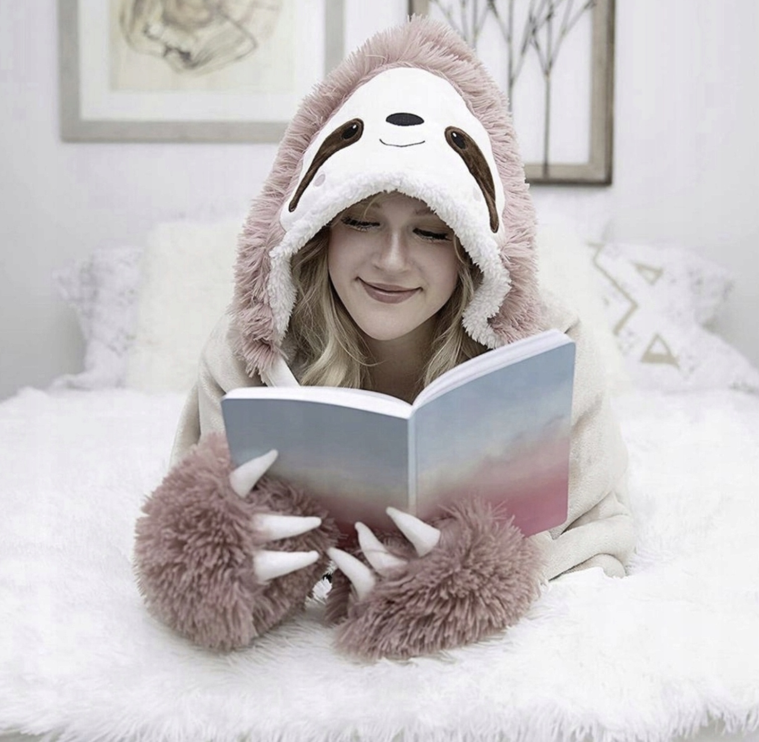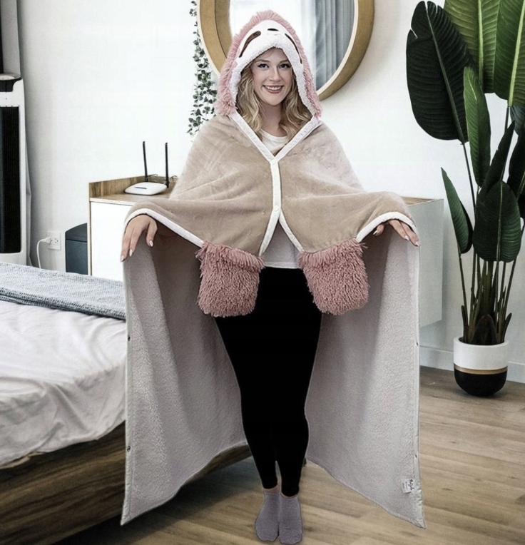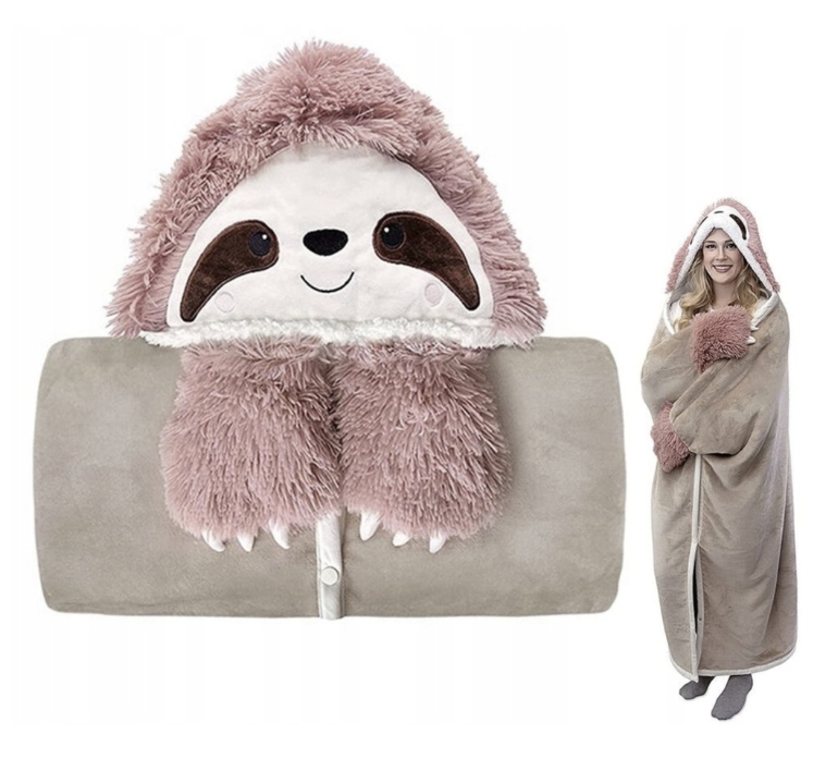 - Wyjątkowy design leniwca: Kocobluza ma niepowtarzalny wzór leniwca z kapturem i łapkami, który dodaje uroku i zabawnej estetyki. To nie tylko praktyczne akcesorium, ale także wyraz indywidualności i poczucia humoru.