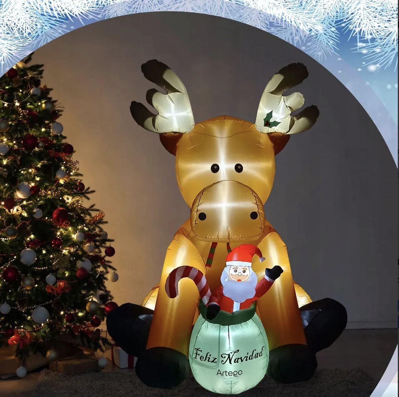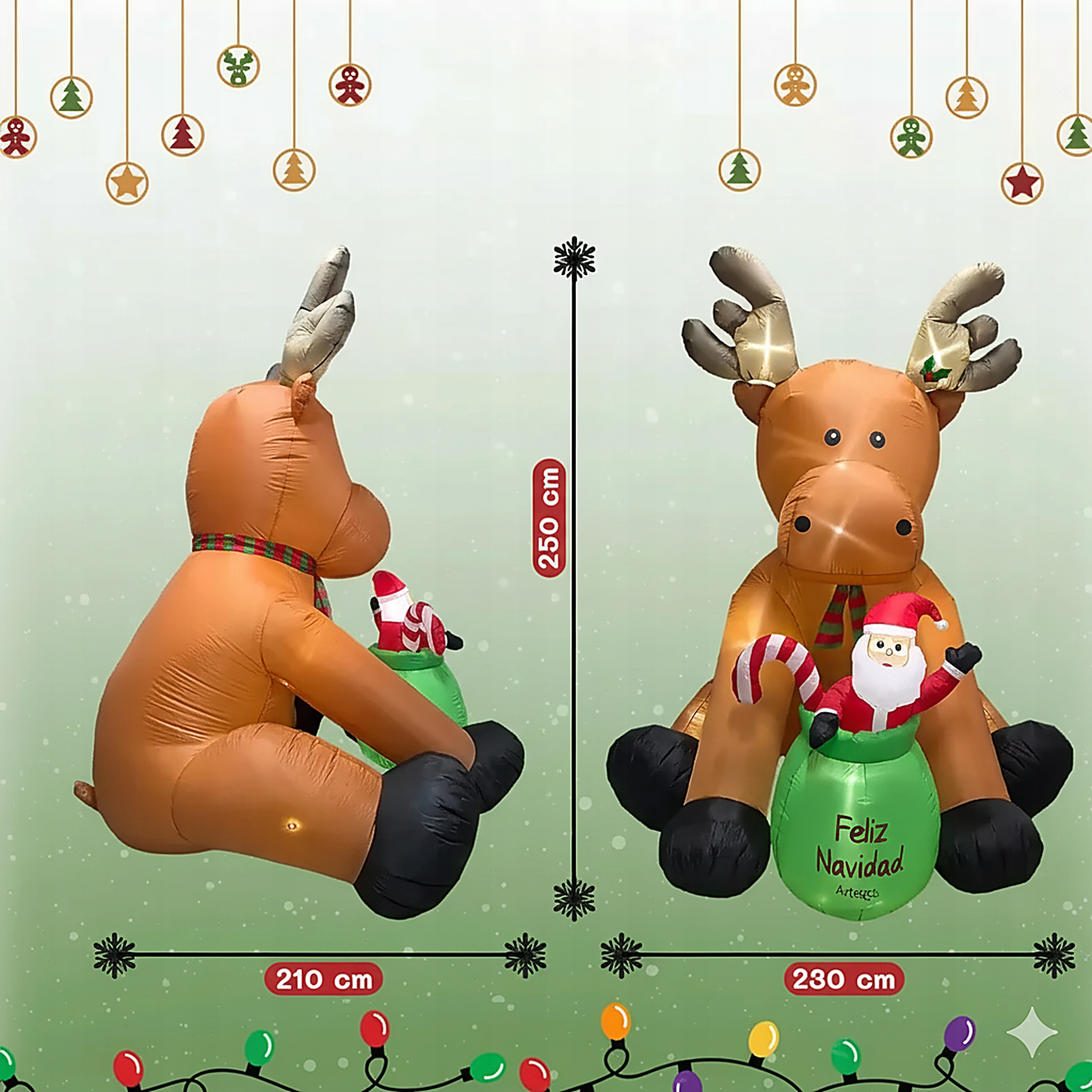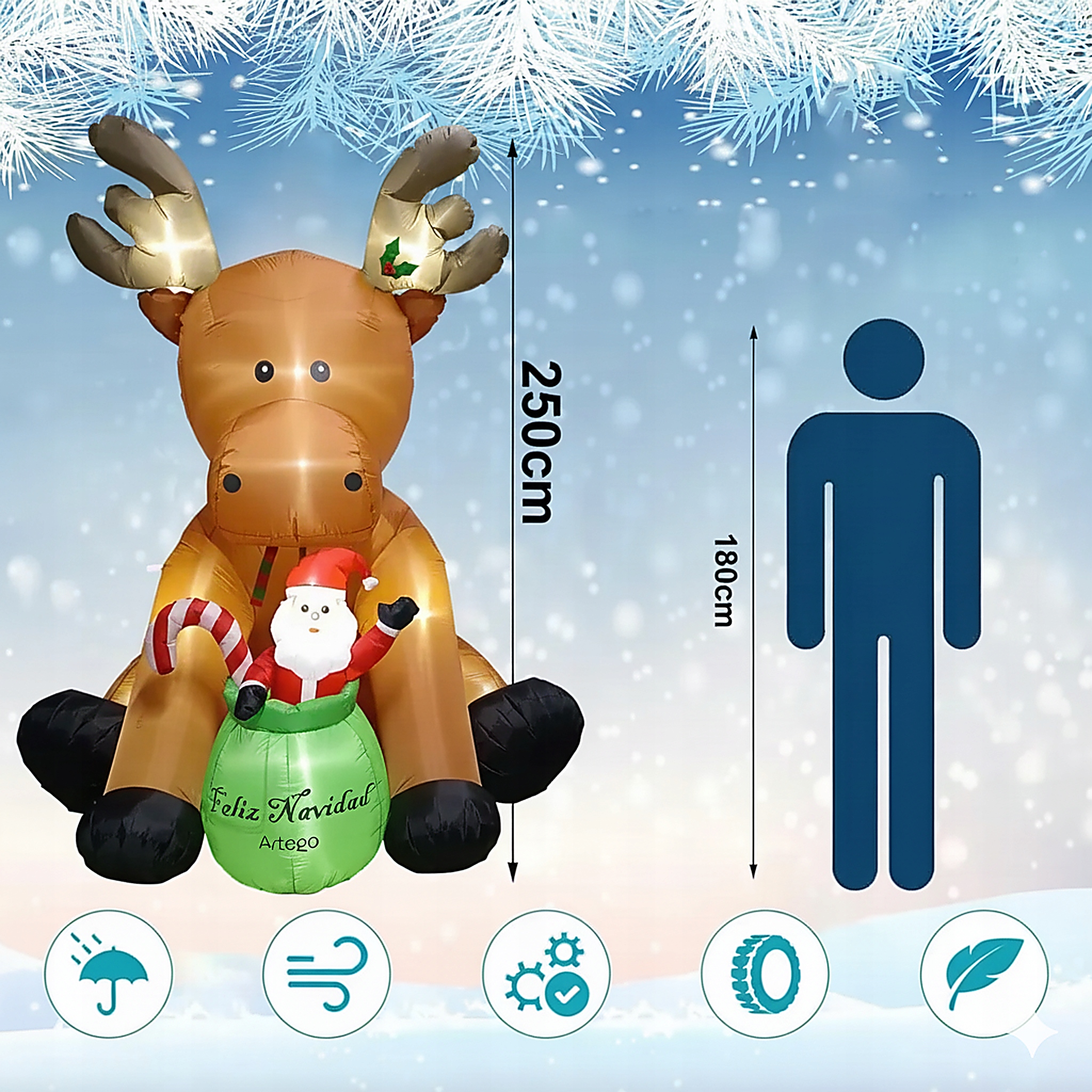 DMUCHANY RENIFER ŚWIĄTECZNY LED 250 CM – GIGANTYCZNA DEKORACJA BOŻONARODZENIOWA