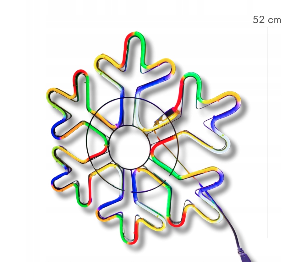 ŚNIEŻYNKA NEON LED 52 CM MULTIKOLOR OZDOBA NA OKNO BALKON ŚWIĄTECZNA XXL