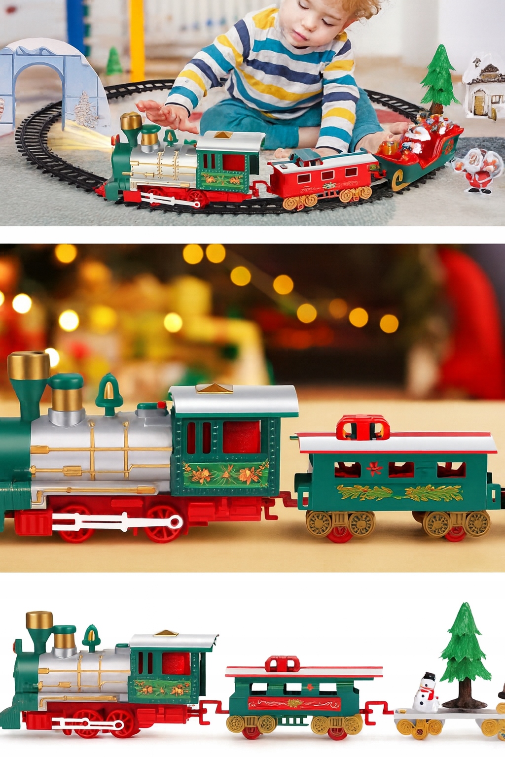 ZESTAW POCIĄG ELEKTRYCZNY KOLEJKA ŚWIĄTECZNA POD CHOINKĘ DYM DŹWIĘK LED