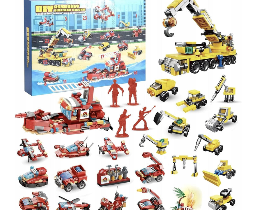 KALENDARZ ADWENTOWY DLA DZIECI KLOCKI STRAŻ POŻARNA POJAZDY PREZENT MIKOŁAJ